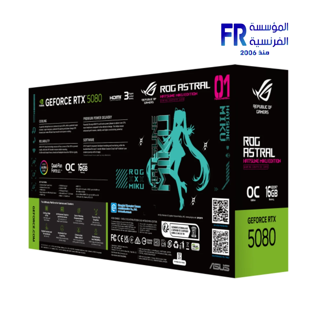The ROG Astral GeForce RTX™ 5080 16GB GDDR7 OC HATSUNE MIKU EDITION provides unprecedented graphical dominance through its revolutionary quad-fan thermal architecture and virtual pop star aesthetics. Specifically, this collaboration combines Hatsune Miku’s signature teal and pink palette with the extreme performance of the Blackwell architecture. Consequently, it serves as the ultimate center-piece for gamers who demand elite-tier frame rates and a vibrant, coordinated setup. Official Product Page