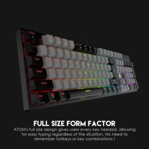 The Fantech Atom MK886 RGB Red Switches Wired Mechanical Keyboard facilitates professional-grade typing stability through its full-size 104-key layout and linear Red switches. Specifically engineered for users who demand long-term durability and vibrant RGB customization, it bridges the gap between essential functionality and high-performance input.